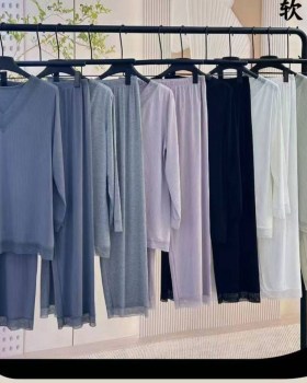 Изящный домашний комплект из мягкой вискозы  идеальное сочетание комфорта и элегантности Лонгбрюки свободного кроя обеспечивают непринужднную посадку, а кружевные вставки добавляют женственности образу Материал дышит, приятно облегает тело и не вызывает раздражения Отличный выбор для уютных вечеров и спокойного сна.