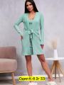 Женская трикотажная двойка: кардиган с пояском и платье.