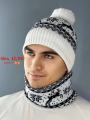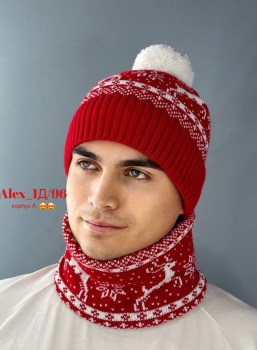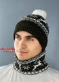 Распродажа комплекс 2 в 1 шапка с отворотом двойной флис с помпон снуд.
