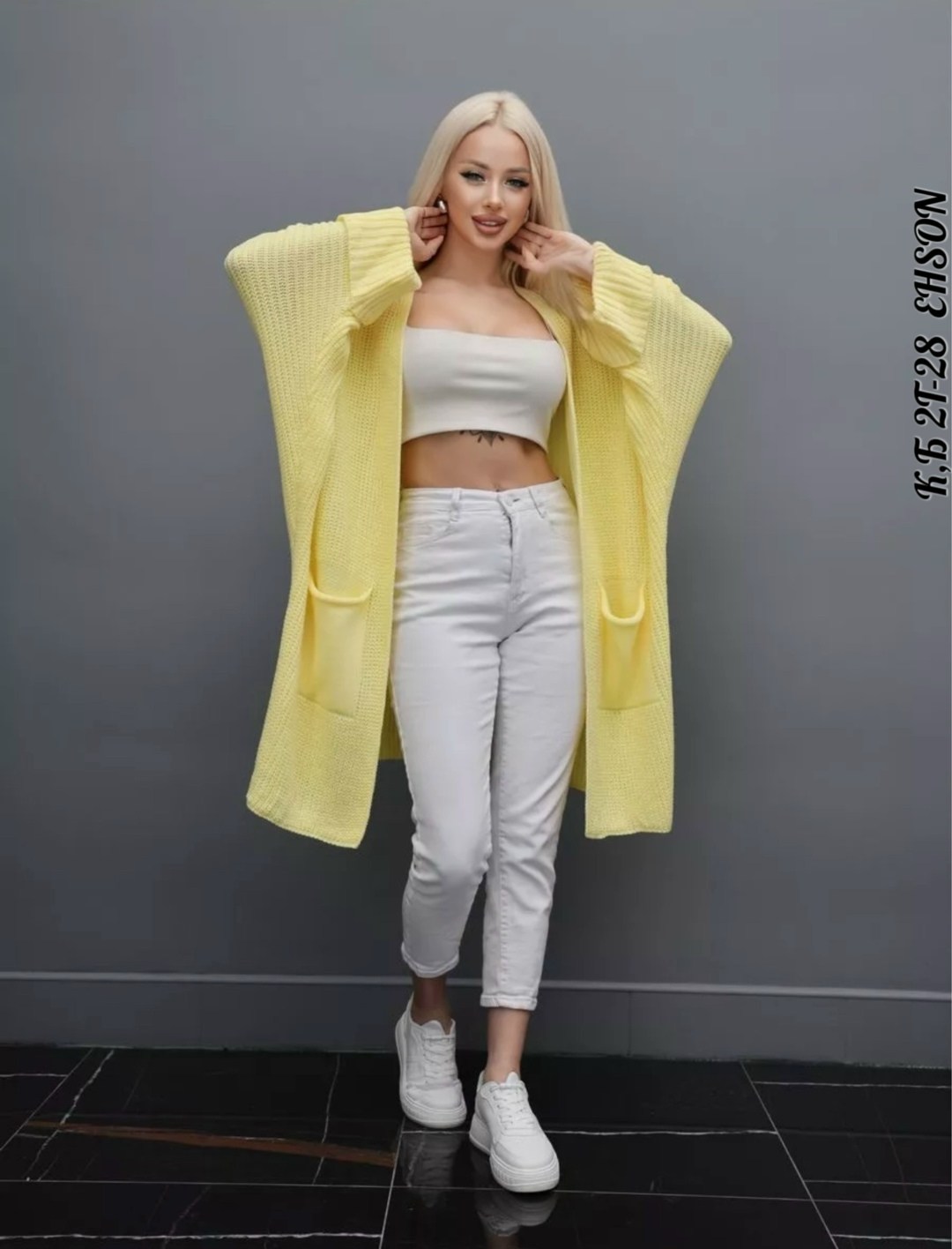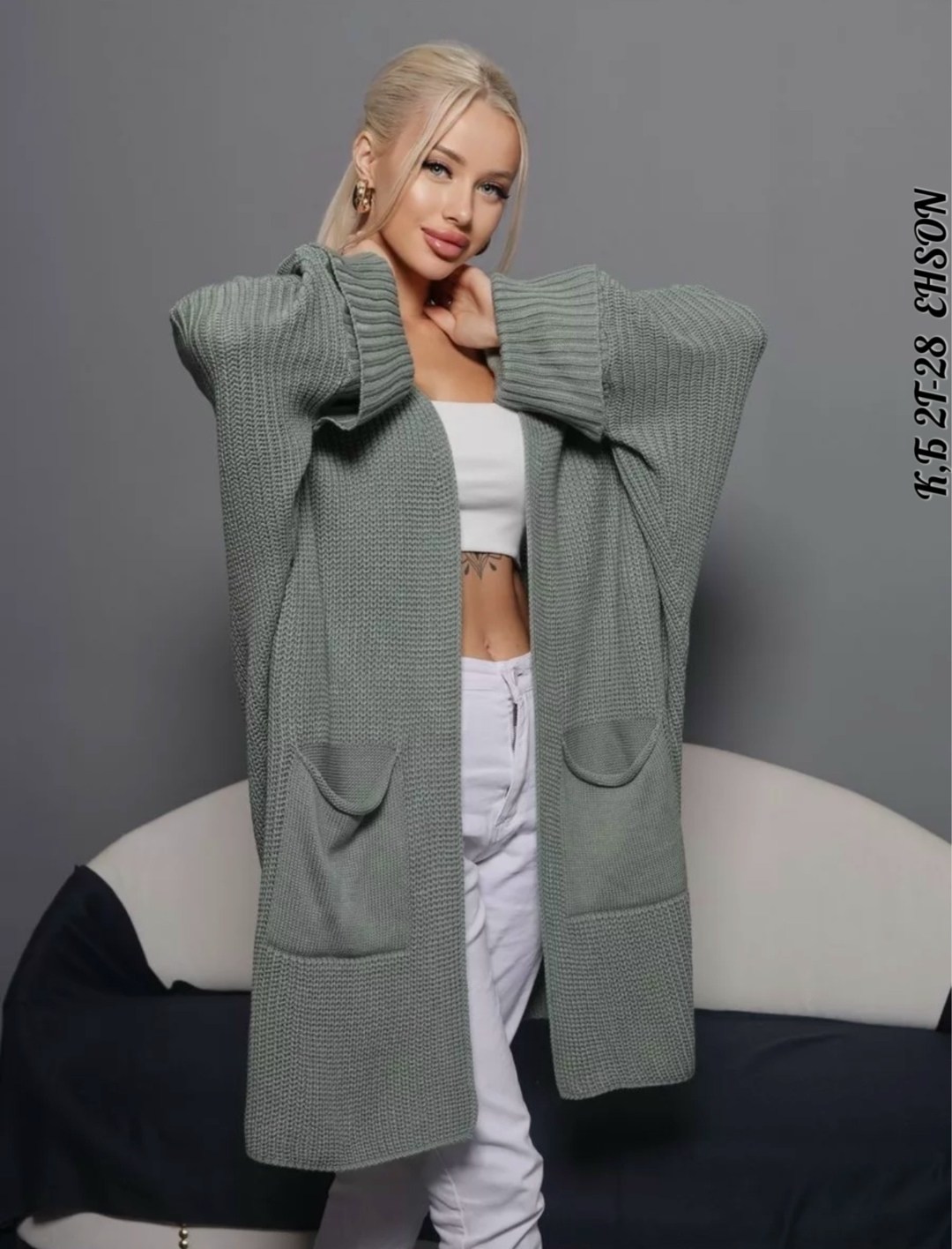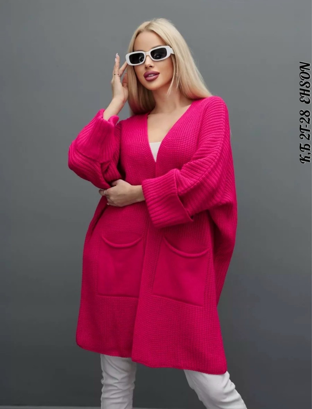 Кардиган длинный женский вязаный с карманами оверсайз Крой - прямой силуэт Рукава летучая мышь.