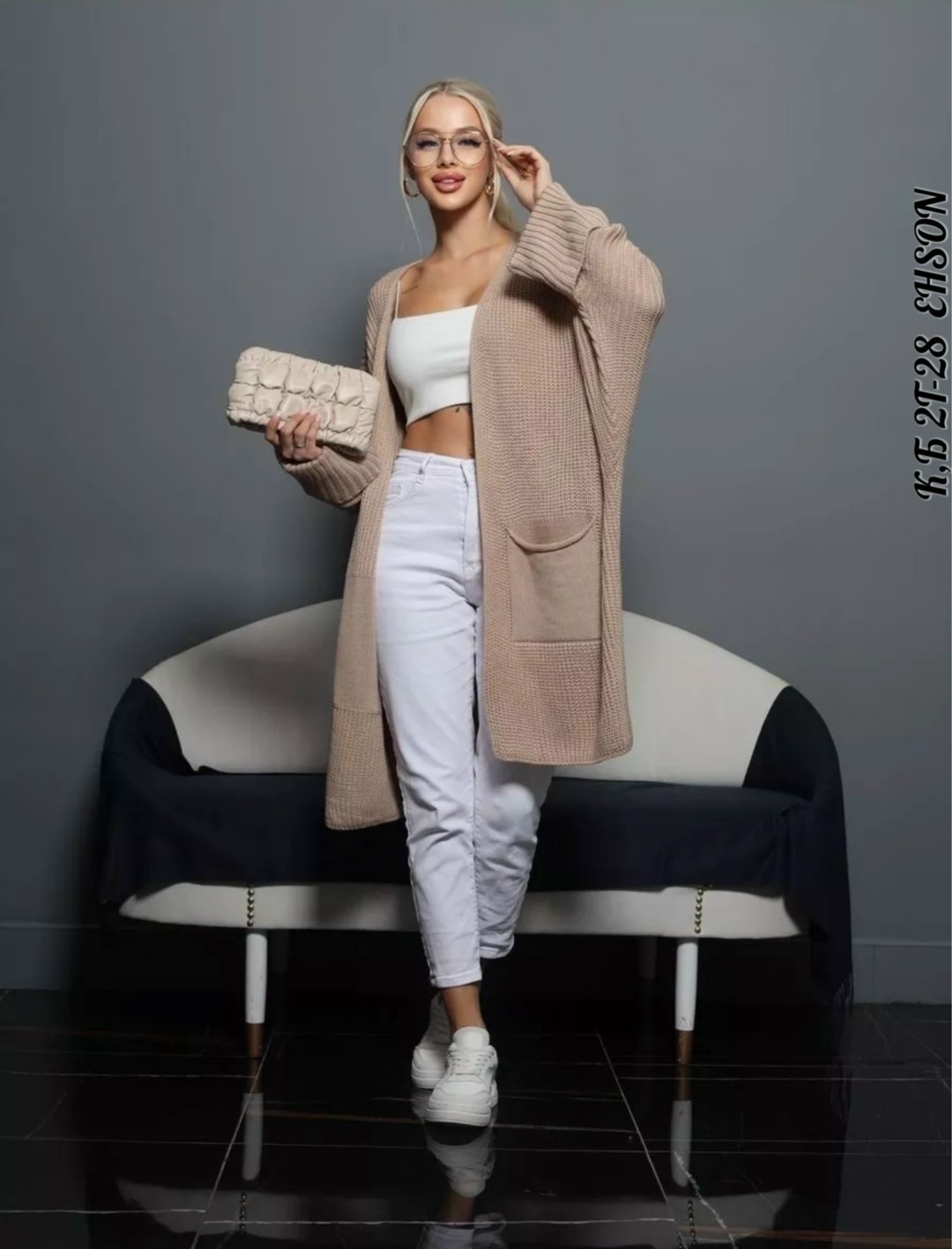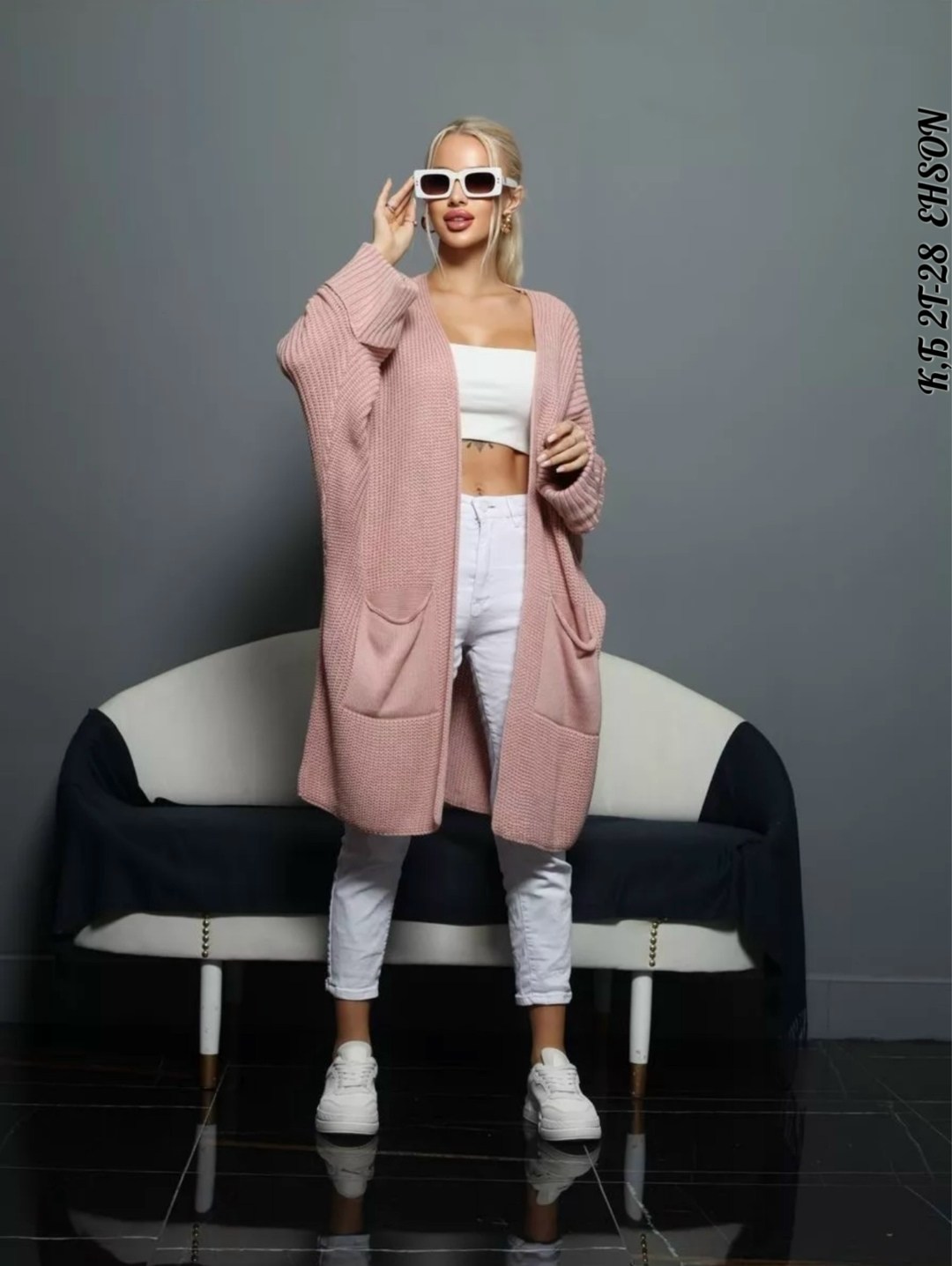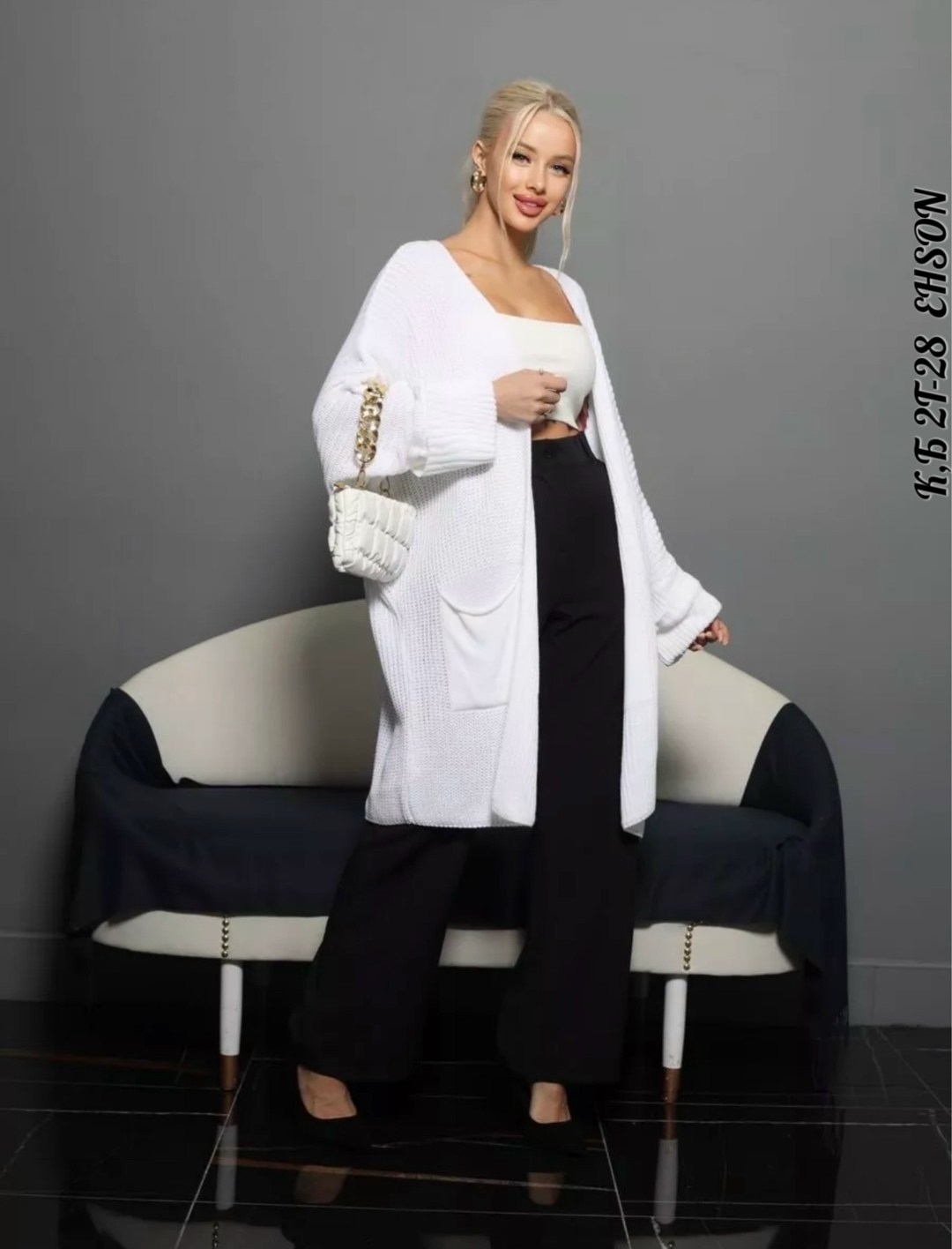 Кардиган длинный женский вязаный с карманами оверсайз Крой - прямой силуэт Рукава летучая мышь.