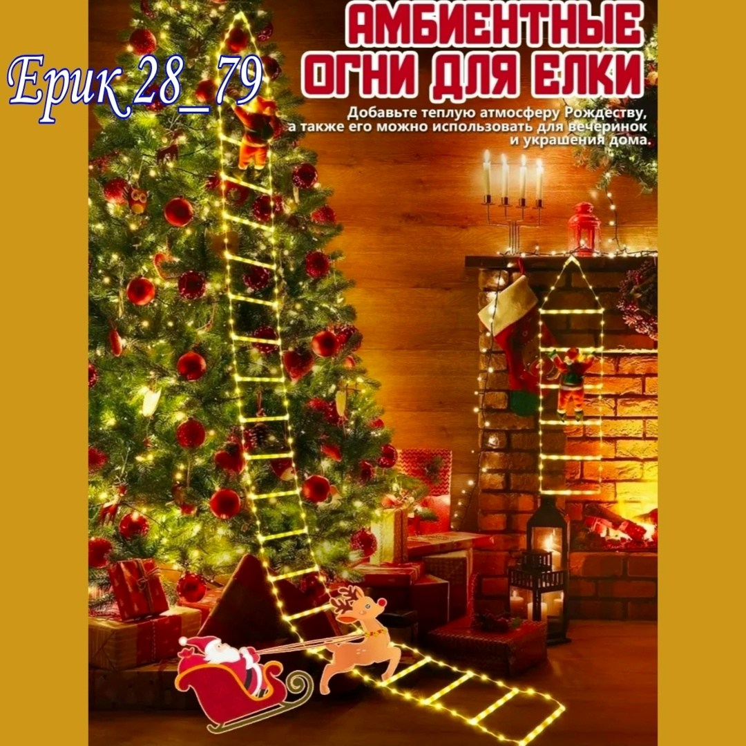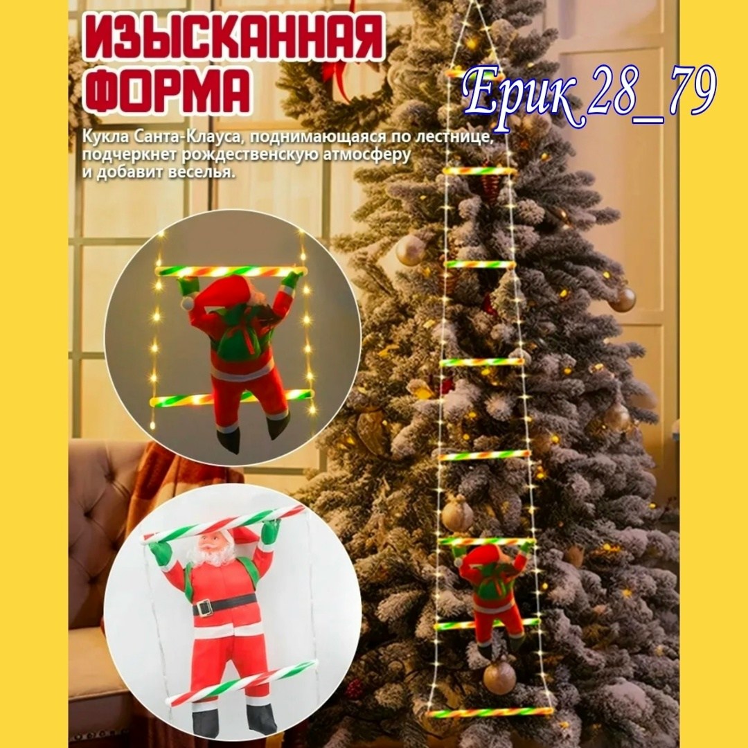 Размер:лестница длинный 1м и 2м; дед мороз высота 30см.