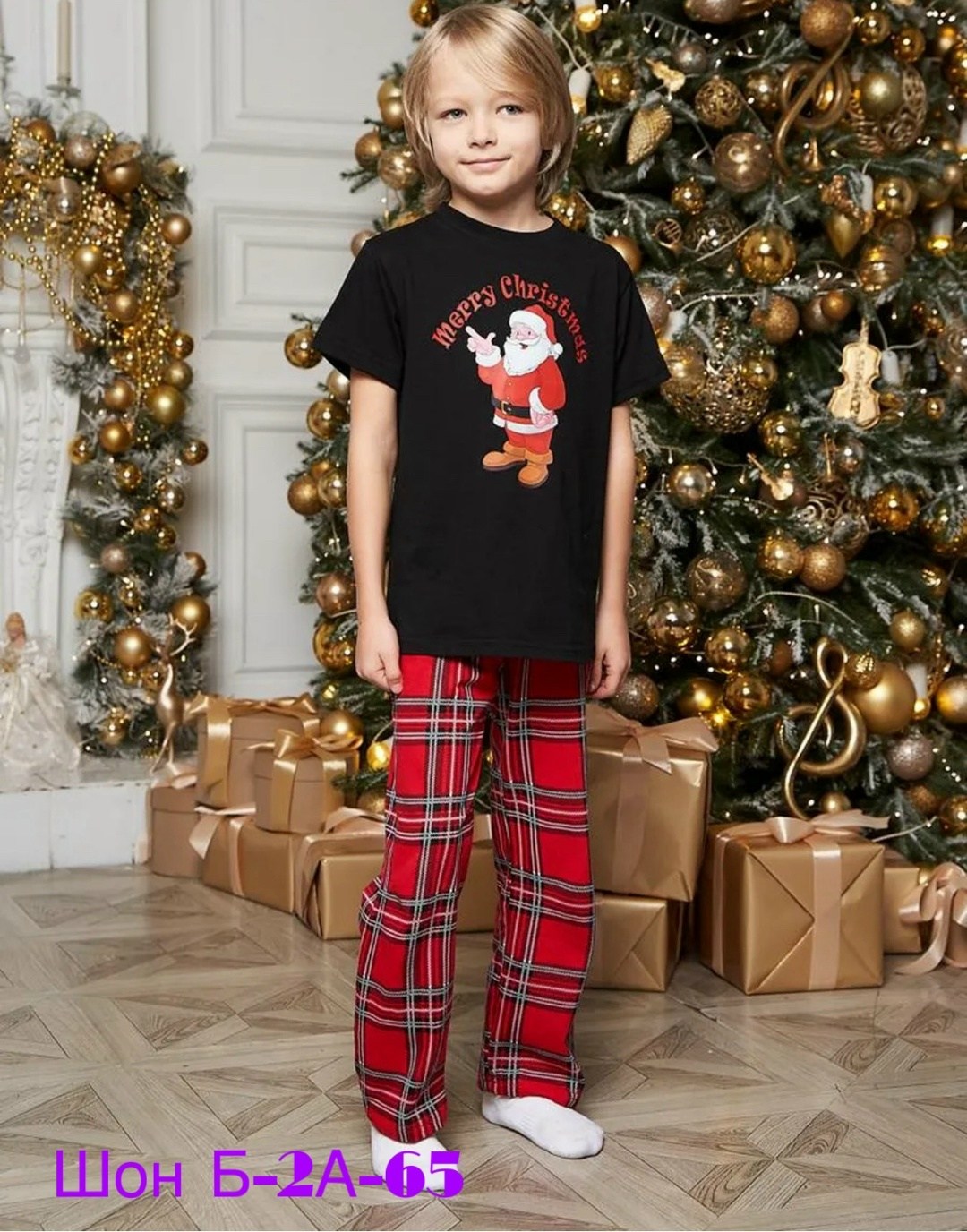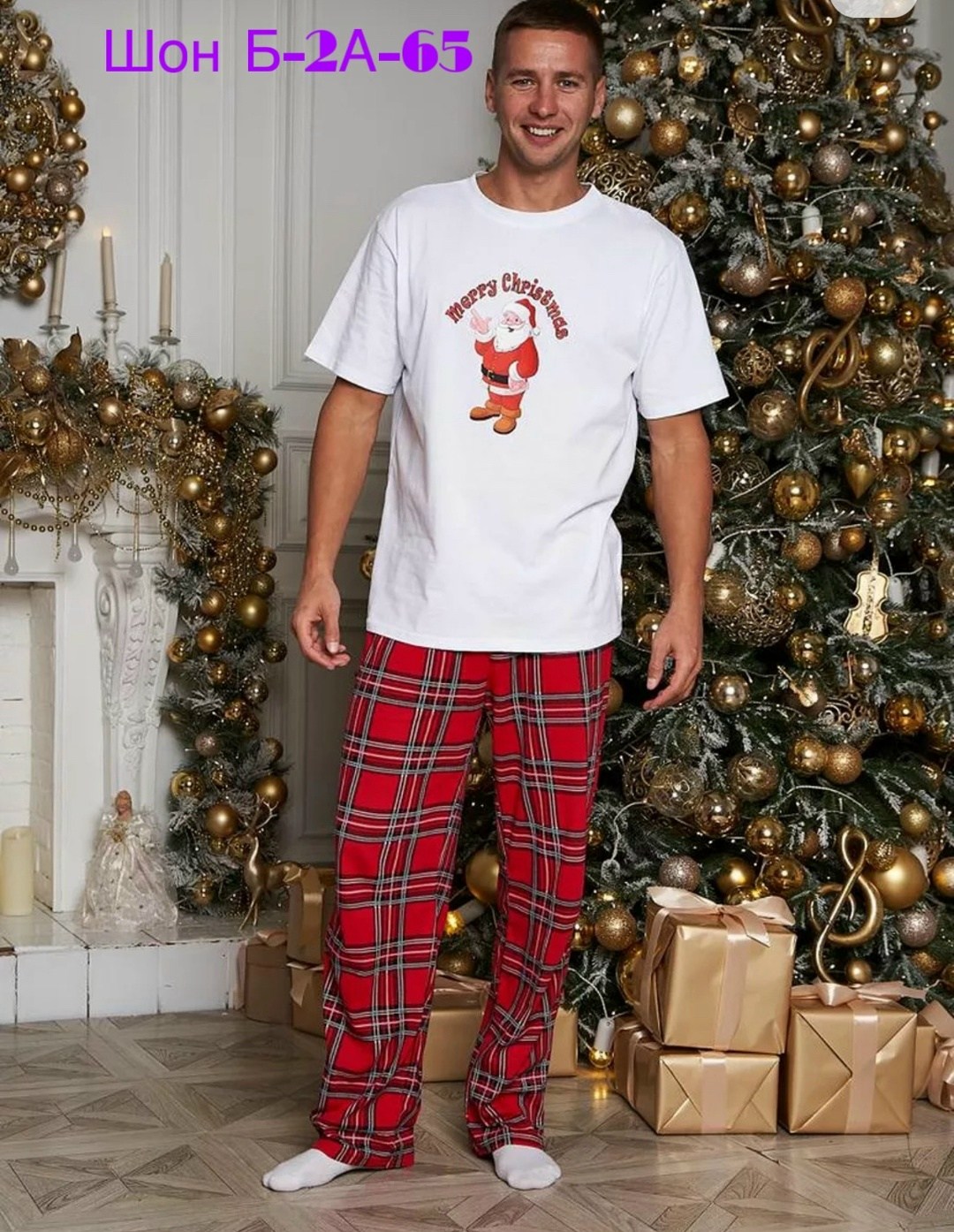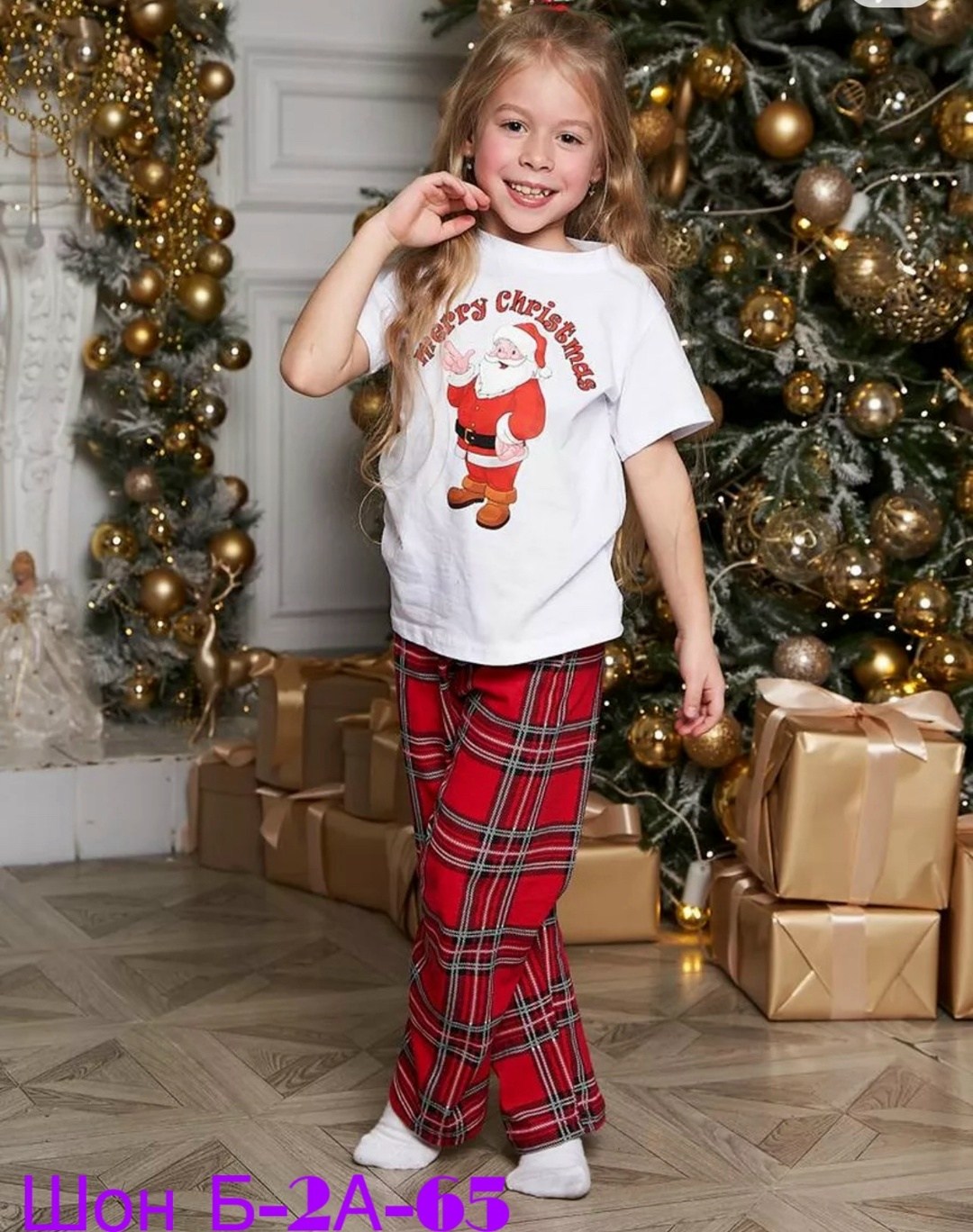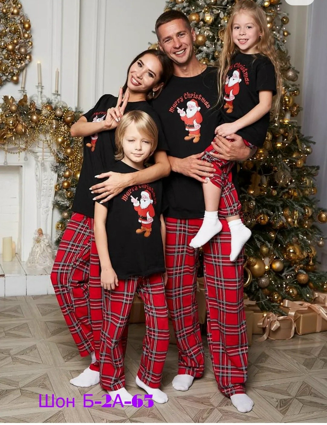 Новогодняя пижама для всей семьи со штанами 2026.