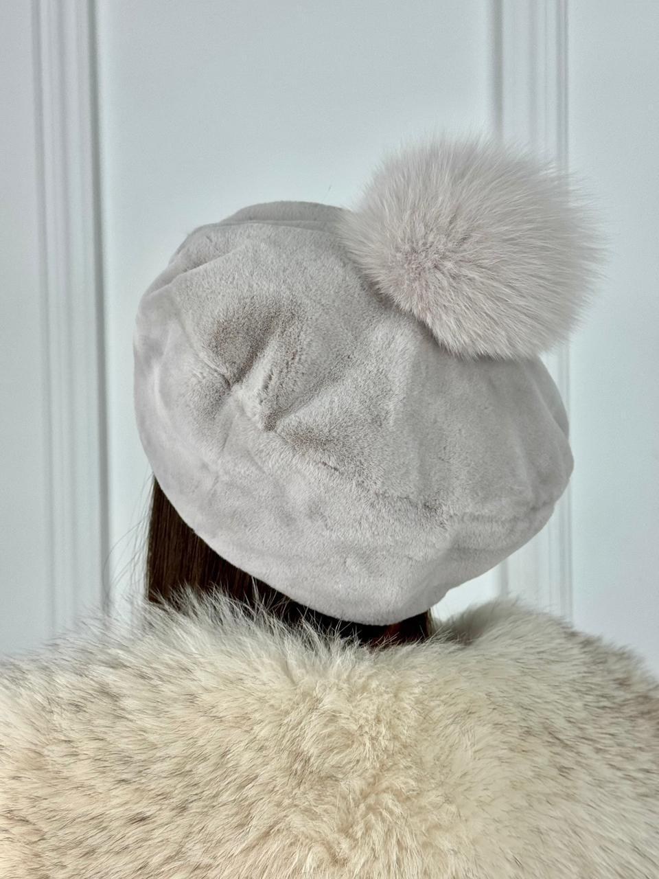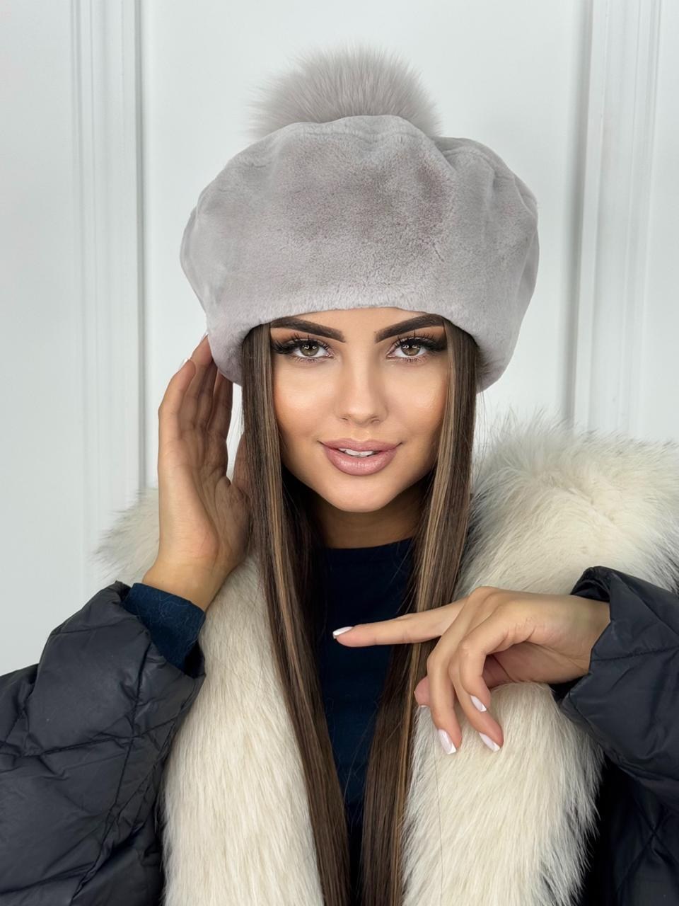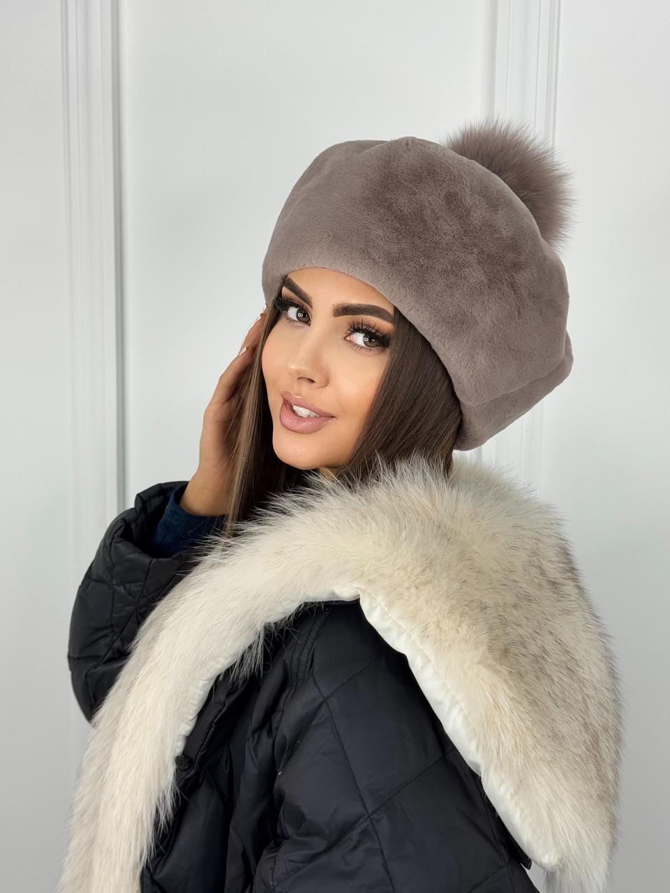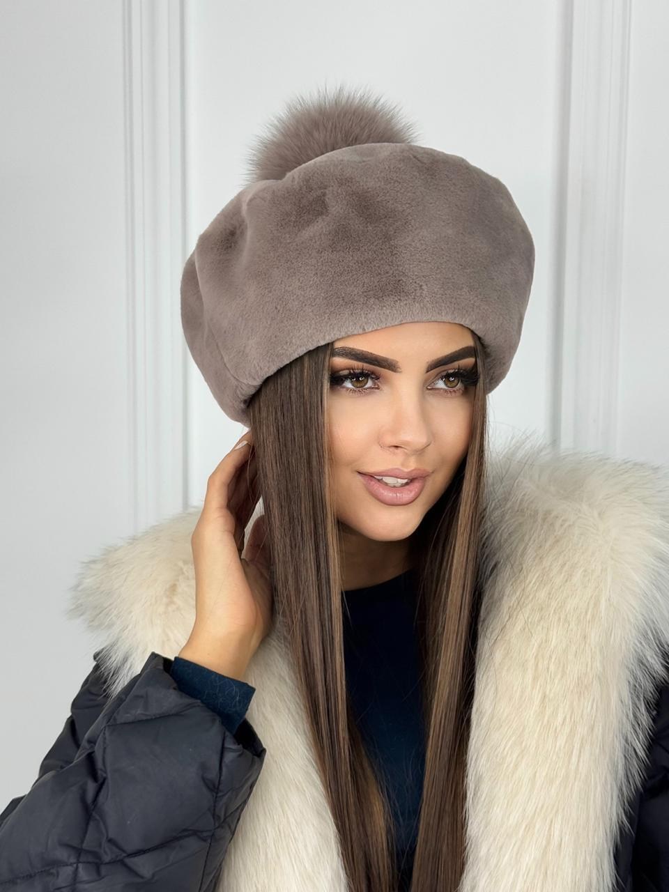 Меховой берет из экомеха под норку качество.