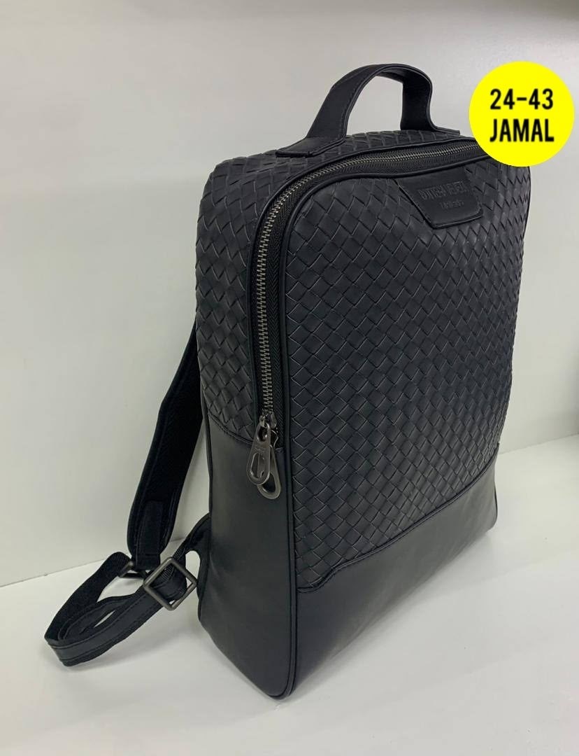 Мужской рюкзак bottega veneta с фирменным плетением intrecciato.