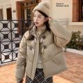 Модные женская теплая короткая свободная куртка на пуговицах с рогом.