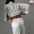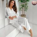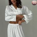Пижамный комплект белоснежный шлк: рубашка и брюки, где каждая деталь создат ощущение легкости и гармонии, наполняя вас спокойствием и красотой, позволяющие ощутить роскошь простоты и стать королевой своей повседневной жизни.
