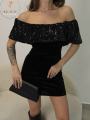 Ткань пайетки с подкладка бархат