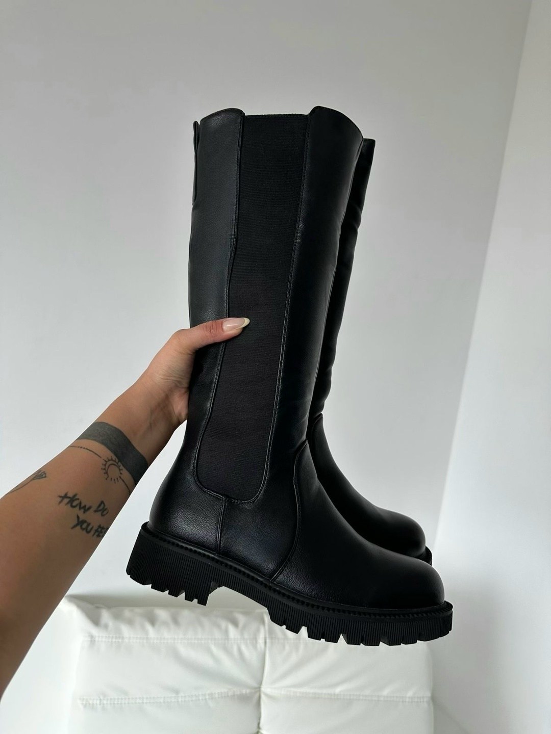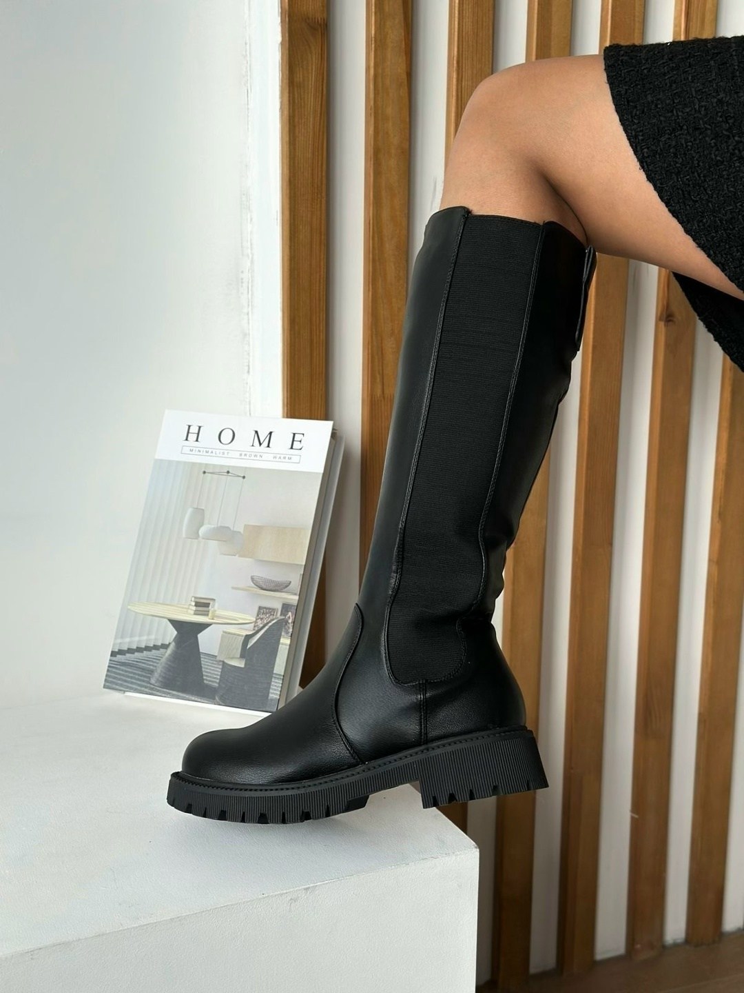 Модные сапоги челси длинная.