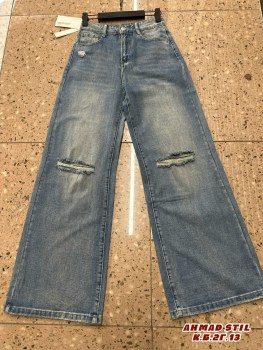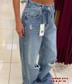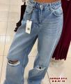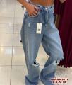 Женские джинсы трубы с модными рваными коленями и высокой посадкой новинка сезона являются модным.