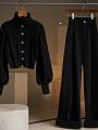 Готовый образ на любое мероприятие смотрится презентабельно и женственно стильные брюки теплый свитер.