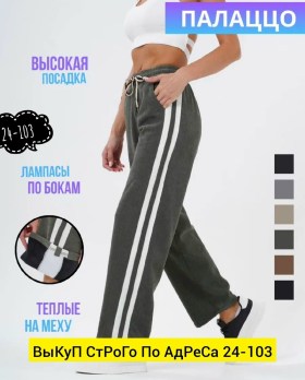 Стильные и удобные широкие брюки с резинкой на поясе и сбоку лампасами.
