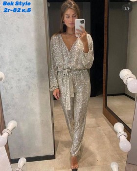 Вечернии комбинезон, усыпанныи паиетками, создаст идеальныи праздничныи образ.