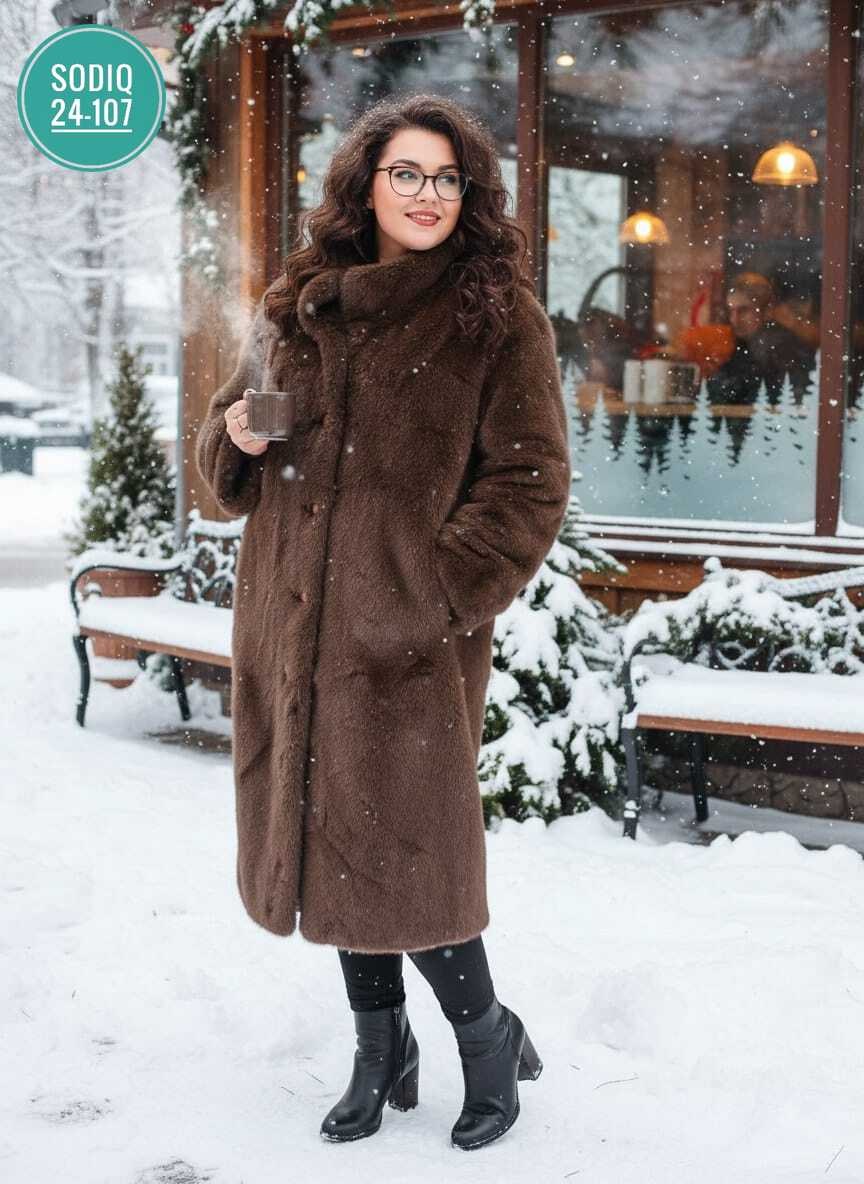 Красивая пальто, изготовленная из высококачественного экомеха, удивляет не только своей мягкостью, но и практичностью.
