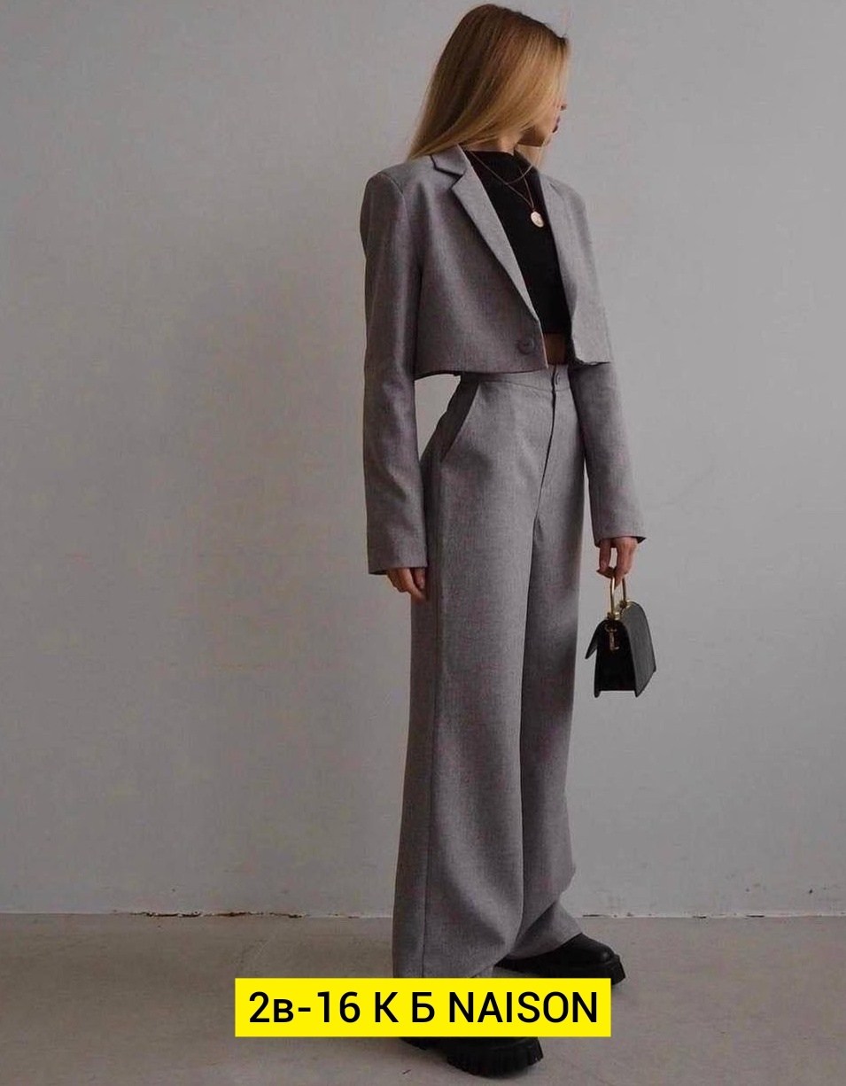 Получили классический костюм двойка комплект состоит из укороченного пиджака и брюк палаццо которые создают одновременно строгий и стильный.