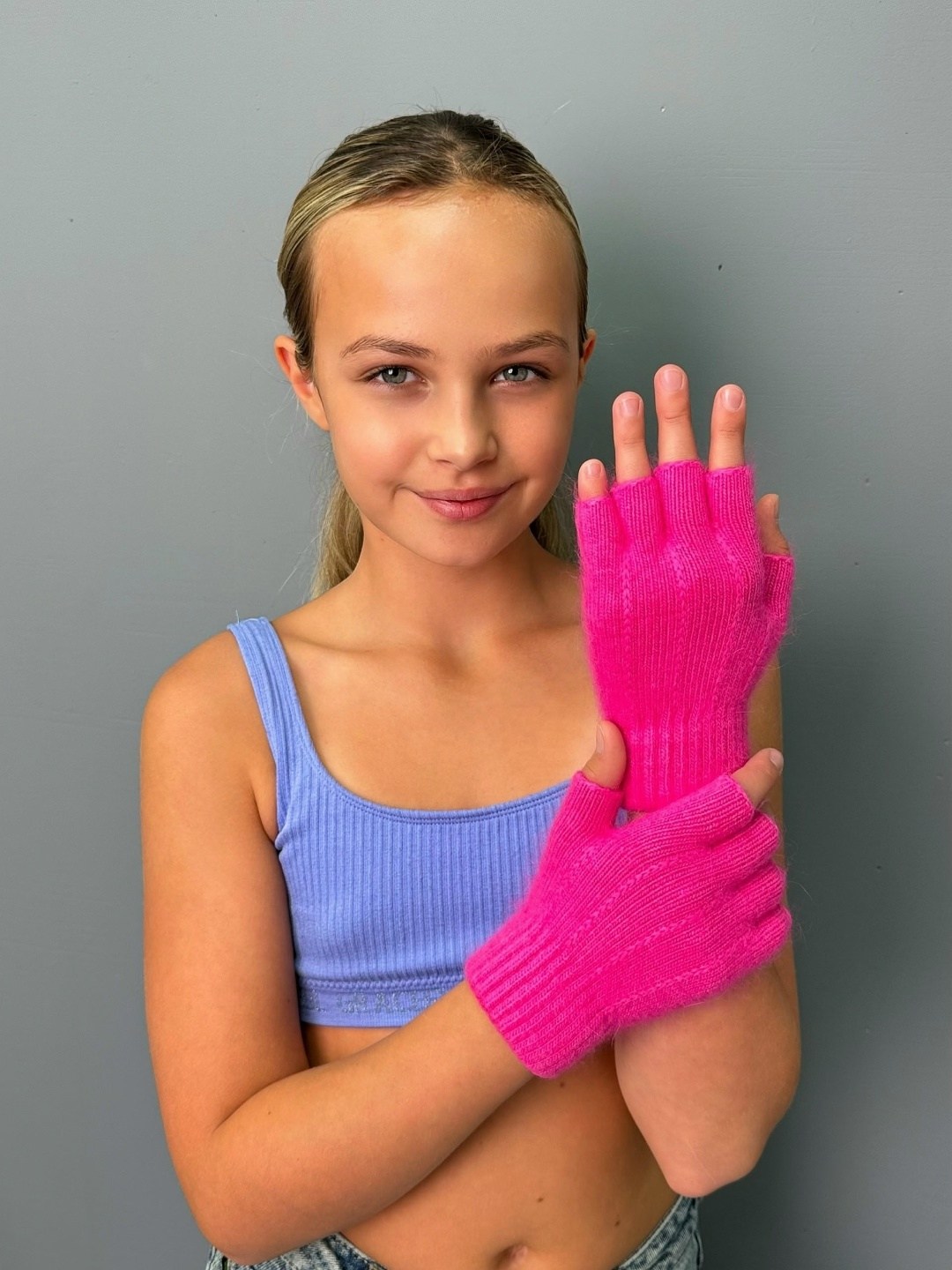 Подростковые перчатки с открытыми пальцами.