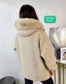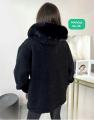 Шуба чебурашка с капюшоном очень тпленький, внутри с мехом идут, мех капюшон снимается.