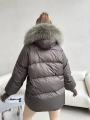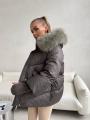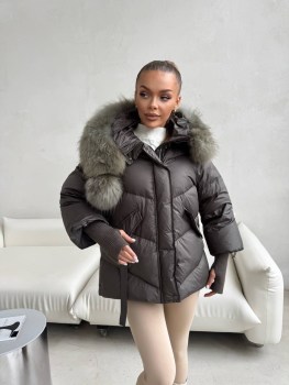 Стильная куртка натуральная мех съмный, наполнитель пух.
