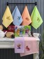 Набор из 6 вафелные кухонные полотенца с красивый вышивкой влагу впитывает хорошо.
