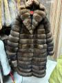 Шубка из натурального меха песца, капюшон, длина 115 см.