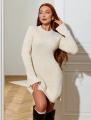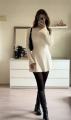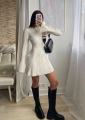 Платье из мягкой вязаной тканьи, идеально подчеркивающее фигуру Приятная фактура с вертикальной рубчиковой вязкой визуально вытягивает силуэт Модель с длинными рукавами и округлым вырезом.