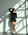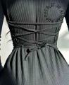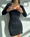 Облегающее короткое платье-лапша с узкими длинными рукавами, со шнуровкой на талии сзади и милым асимметричным разрезом спереди слева.
