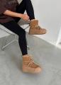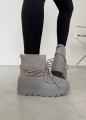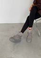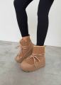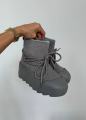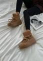 Натуральная, угги очень красивые и стильные можно носит с джинсами а также спортивной одежде имеется замок сбоку, шнурки можно использовать как имитация также регулировать.