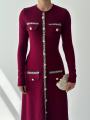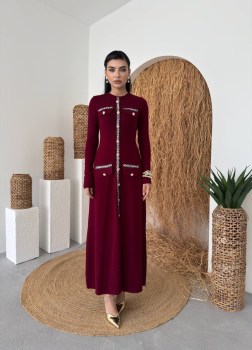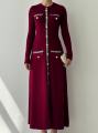 Идеальный баланс комфорта и элегантности: платье с декоративной отделкой и золотыми пуговицами.