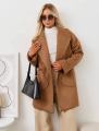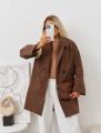 Пальто 999 р без выбора женское с боковыми карманами идеально подходит для демисезонного периода Этот стильный и практичный предмет гардероба изготовлен из легкой и прочной тканьи с эффектом песок Его длина немного выше колена, что делает полупальто женское универсальным и удобным для повседневной носки.
