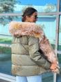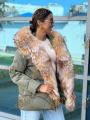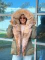 Пуховик с натуральным мехом лисы, длина 70 см, утеплен гусиным пухом, мех съемный.