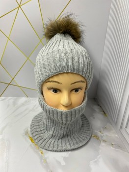 Двойка шапка с натуральным помпоном.