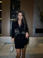 Стильное платье-пиджак из роскошного бархата  Изюминкой модели является деликатная аппликация из сверкающих кристаллов, расположенная на лацкане Платье идеально подходит для создания как вечернего, так и делового образа.
