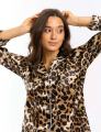 В комплекте рубашка и брюки прямого кроя.