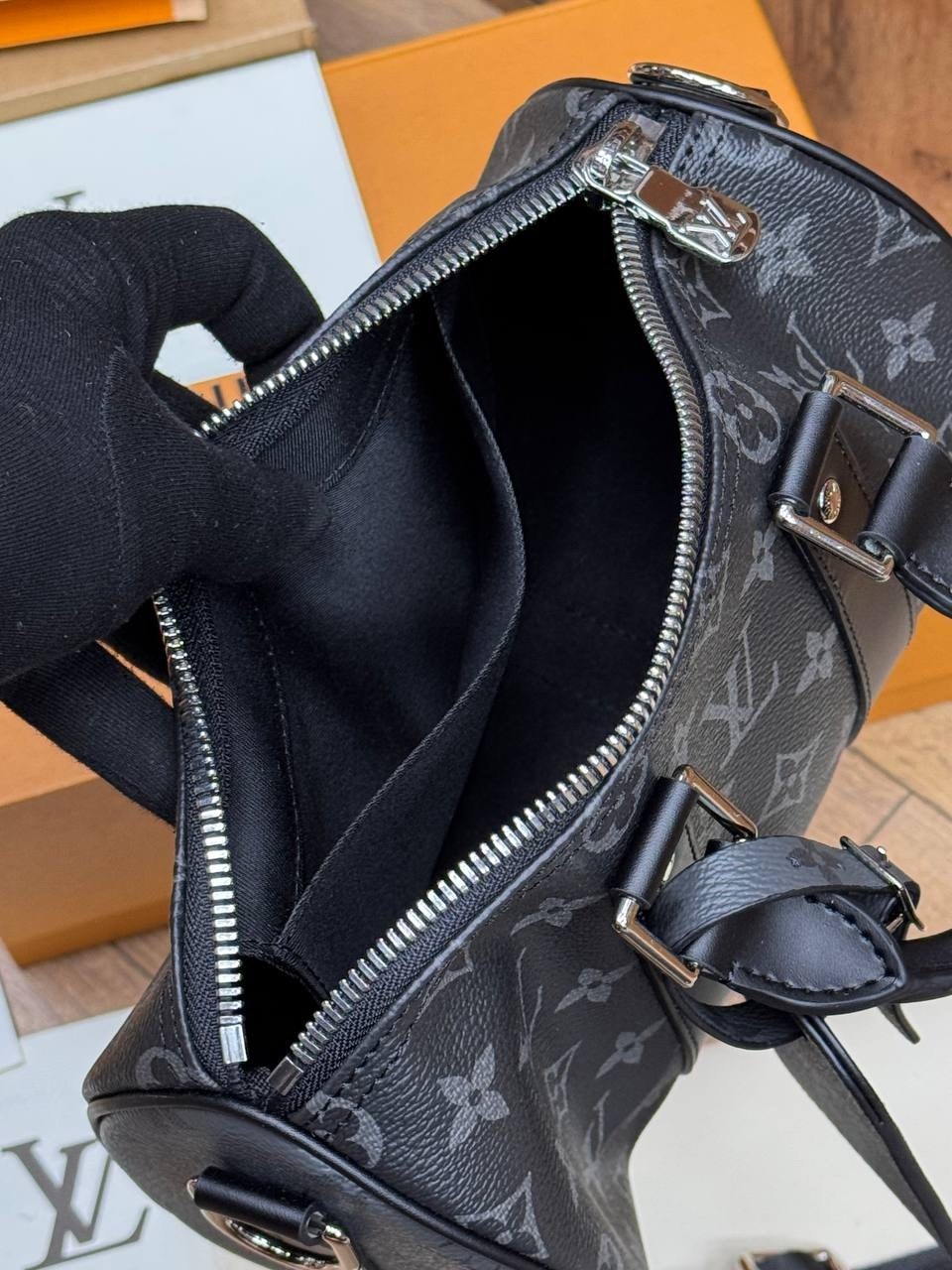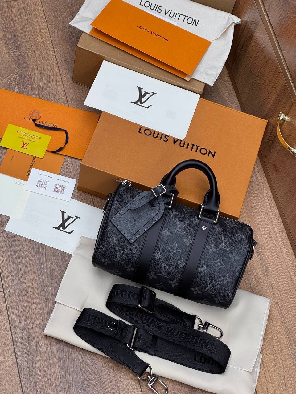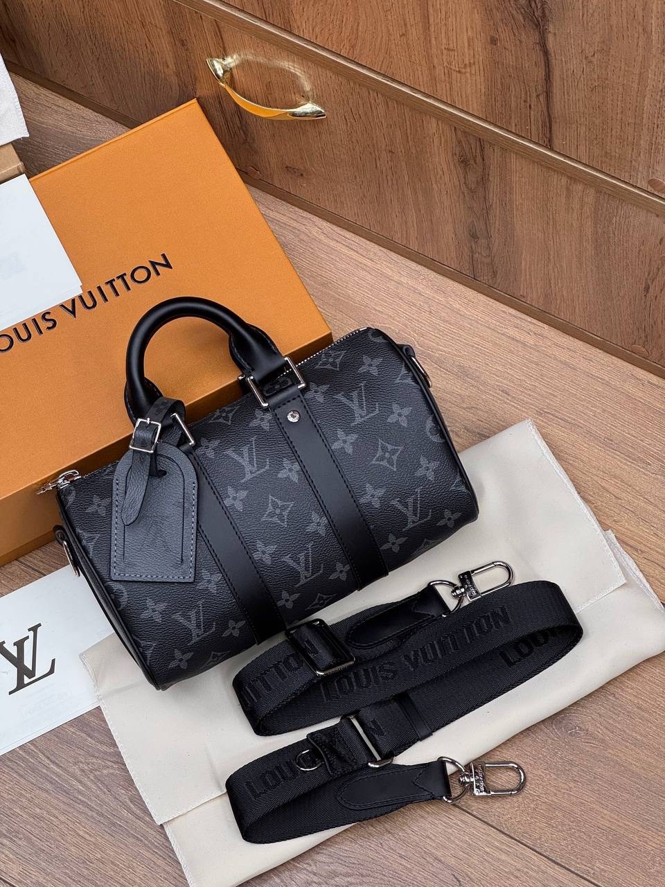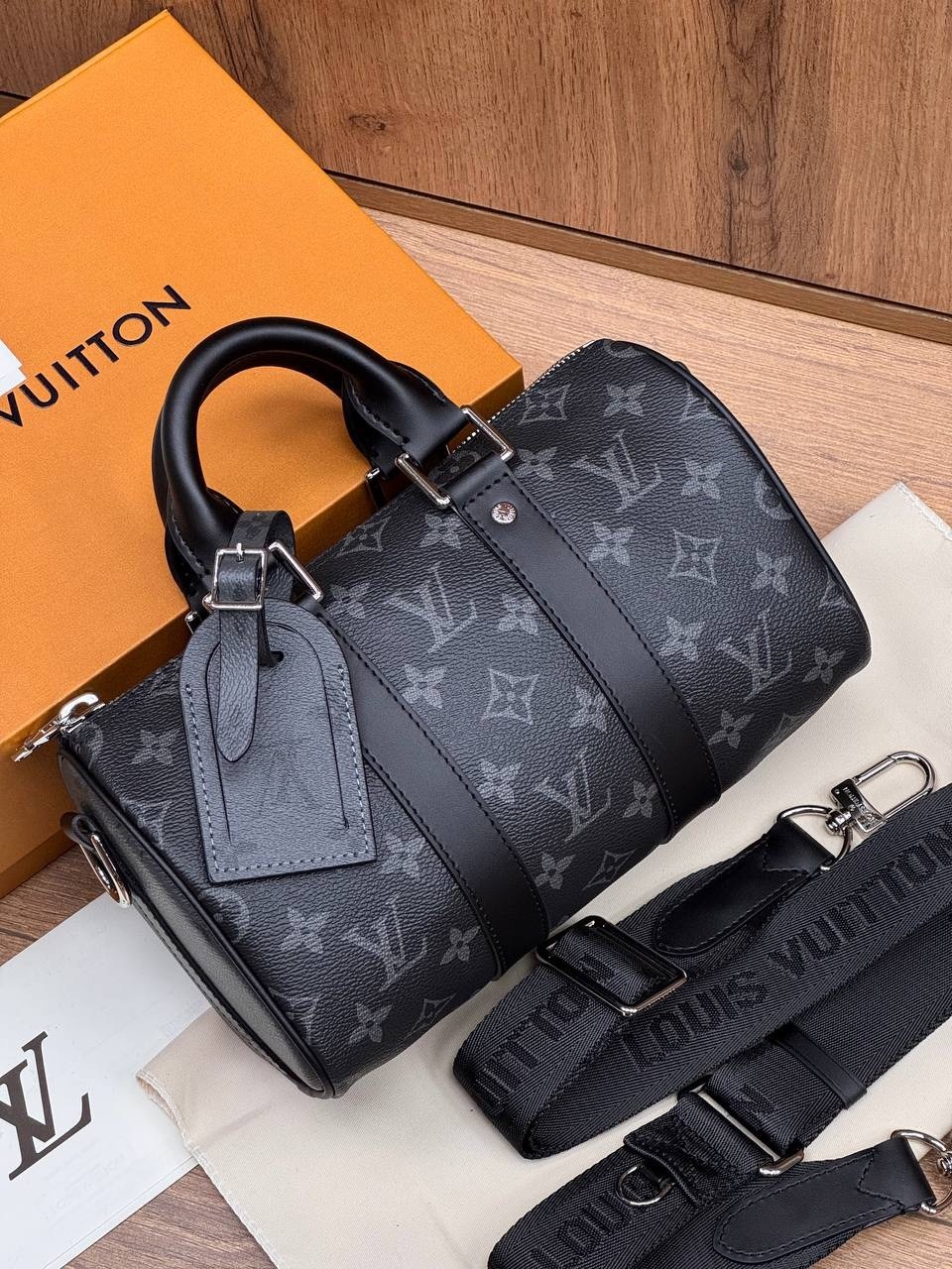 Последнее дополнение к семейству keepall, эта новая мини-версия выполнена из роскошной черной кожи taurillon monogram Его обновленный дизайн включает в себя все культовые детали keepall, такие как двойные усиливающие полосы и съемную кожаную бирку с именем С двойной ручкой и фирменным плечевым ремнем это идеальная городская сумка для мужчин с современными вкусами.