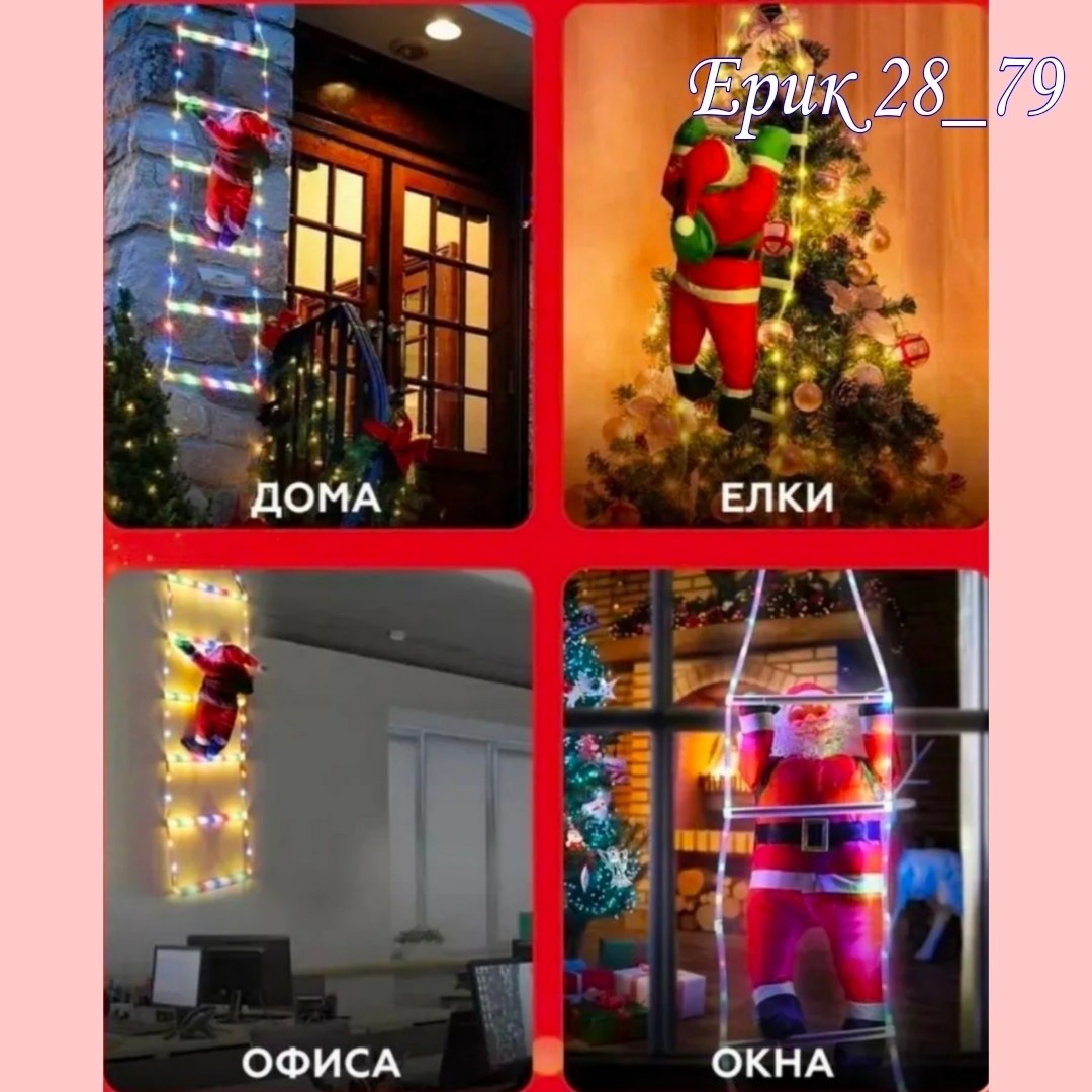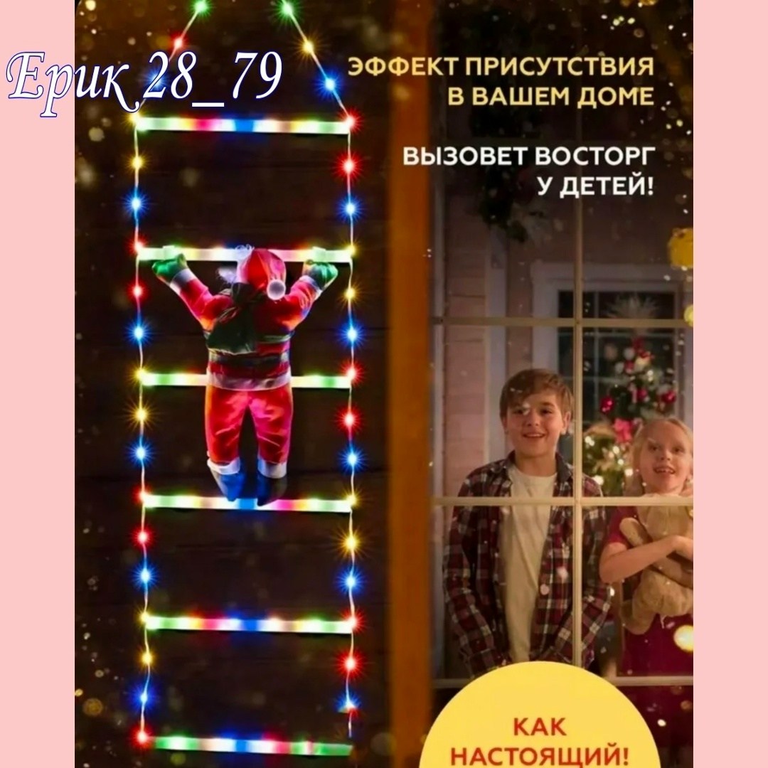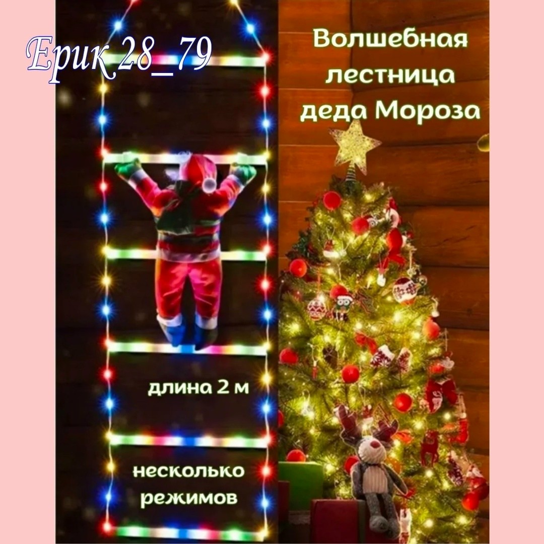 Размер лестница длинный 2м; дед мороз высота 30см.