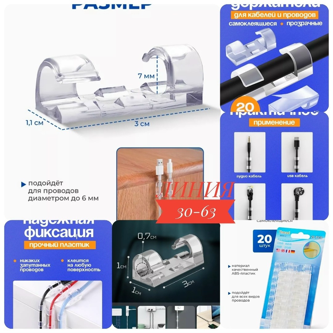 Крючки самоклеящиеся прозрачные для проводов.