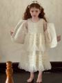 Платье с верхом из твида и пышной многослойной юбкой из фатина, создающее нежное и воздушное настроение.