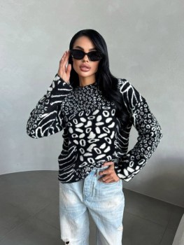 Красивый,мягкий свитер с необычным принтом.