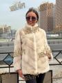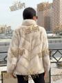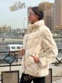 Шубка из меха норки, стойка воротник, цвет пудра, длина 70 см.