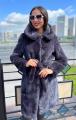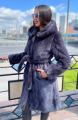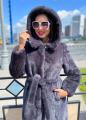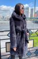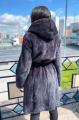 Шубка из меха европейской норки с капюшоном, модель халат, цвет графит.