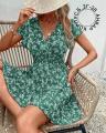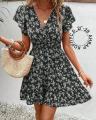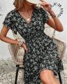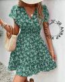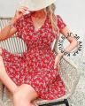 Платье с резиночкой на талии, крылышками и запашным лифом.