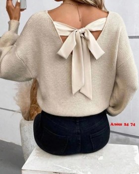 Нежный вязаный свитер с v-образным вырезом.