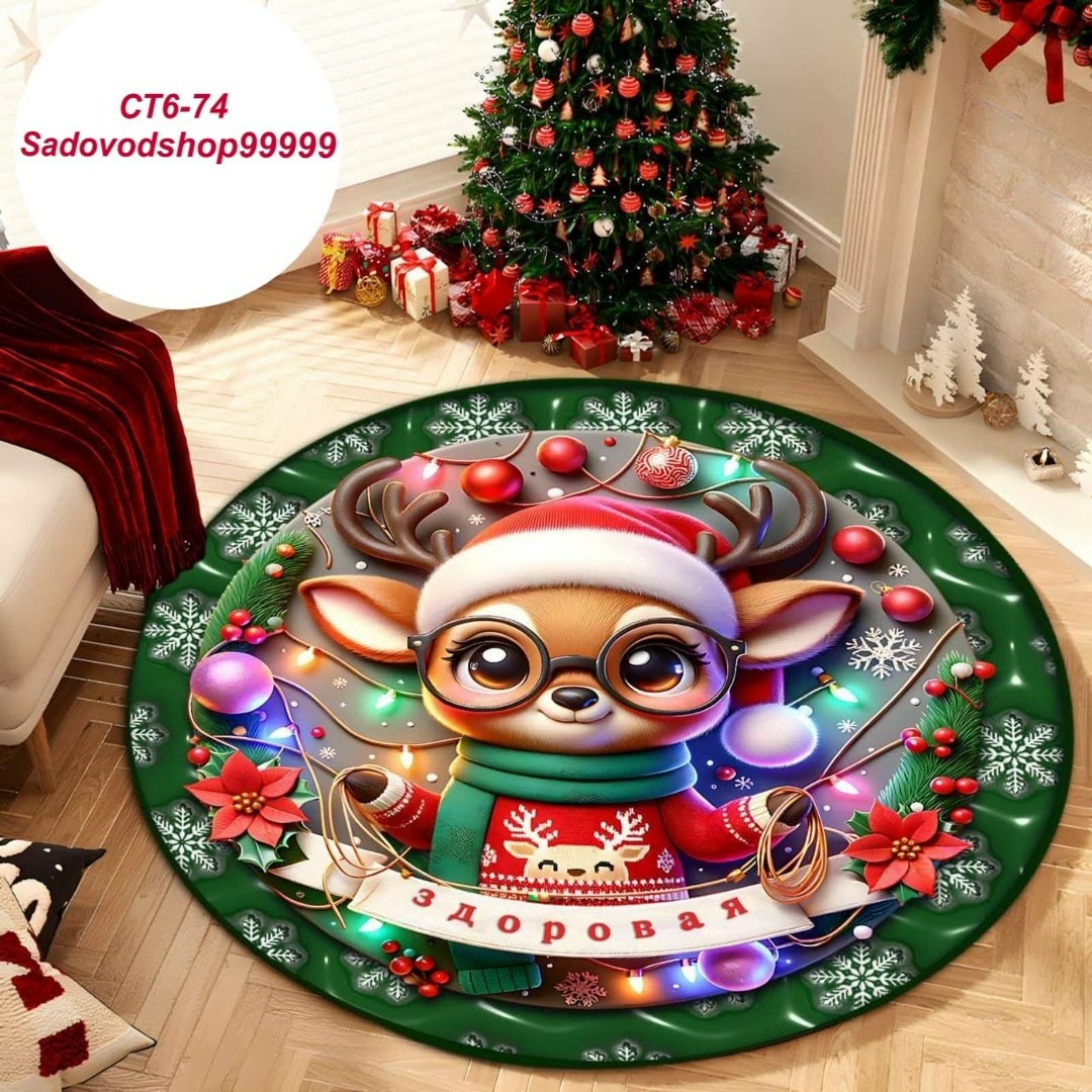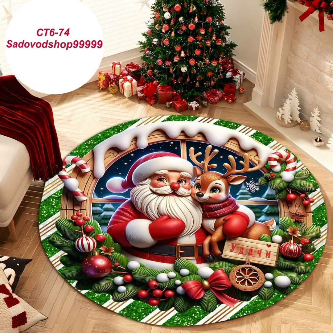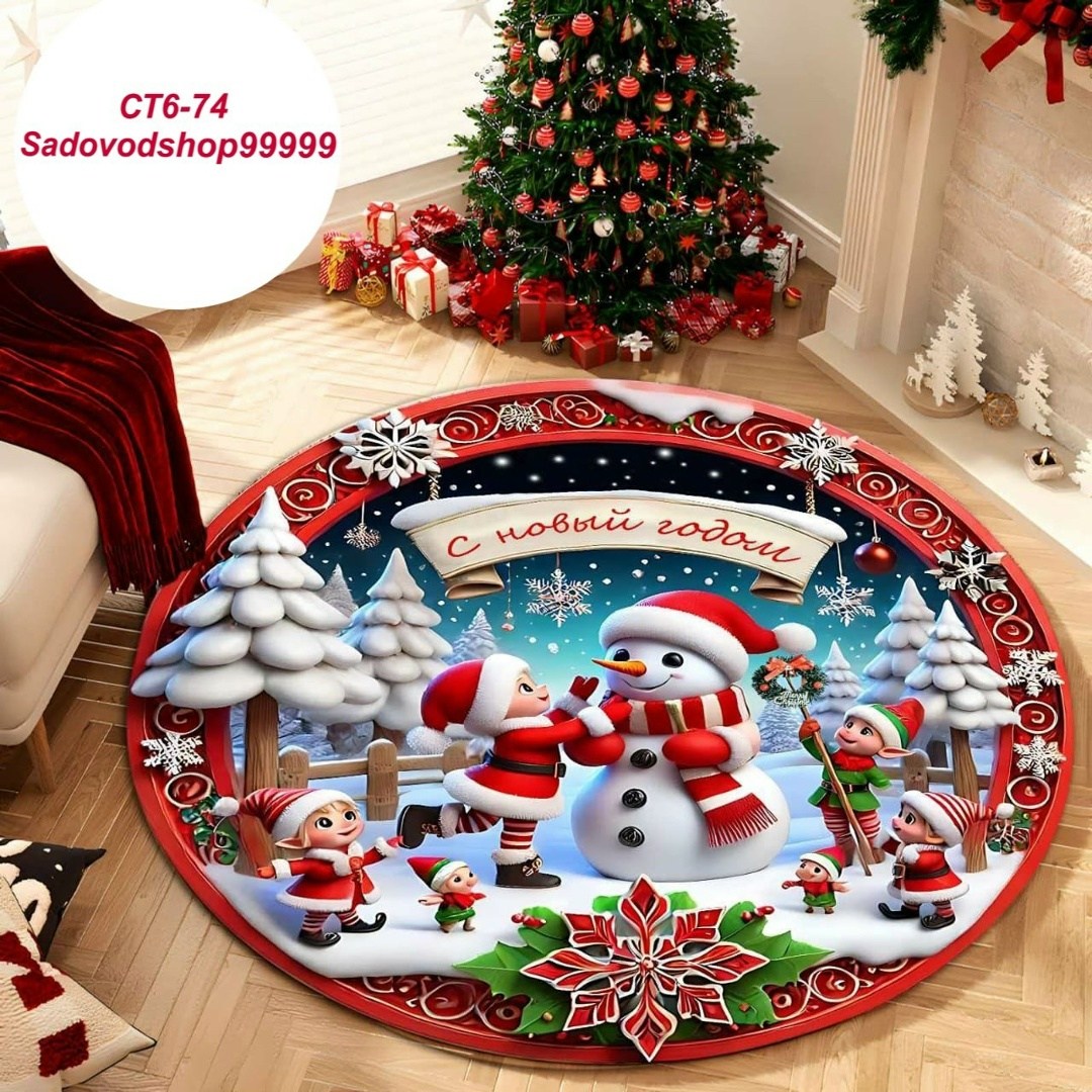 Новогодний круглый коврик 3d