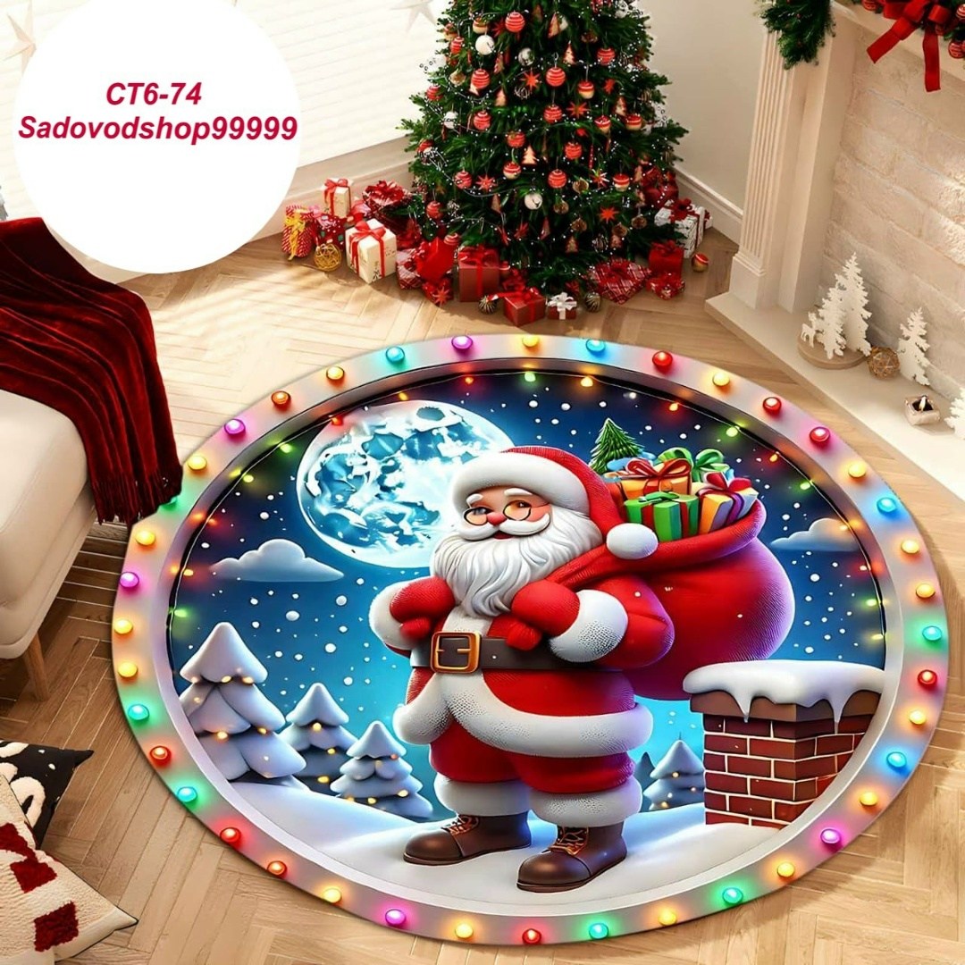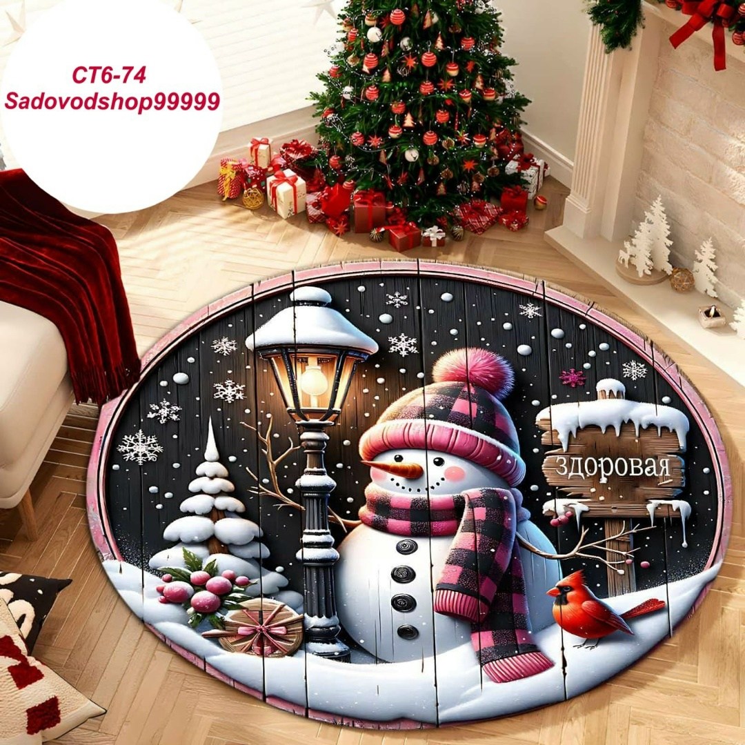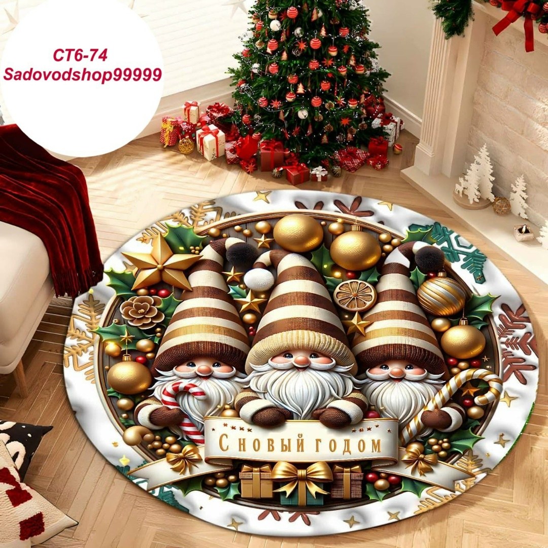 Новогодний круглый коврик 3d