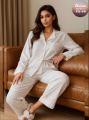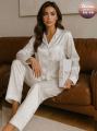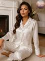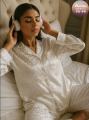 Пижамный комплект белоснежный шлк: рубашка и брюки это нежное прикосновение элегантности, дарящее ощущение покоя и гармонии, приглашает окунуться в мир роскоши, свободы и безмятежных снов, превращая отдых в истинное наслаждение.