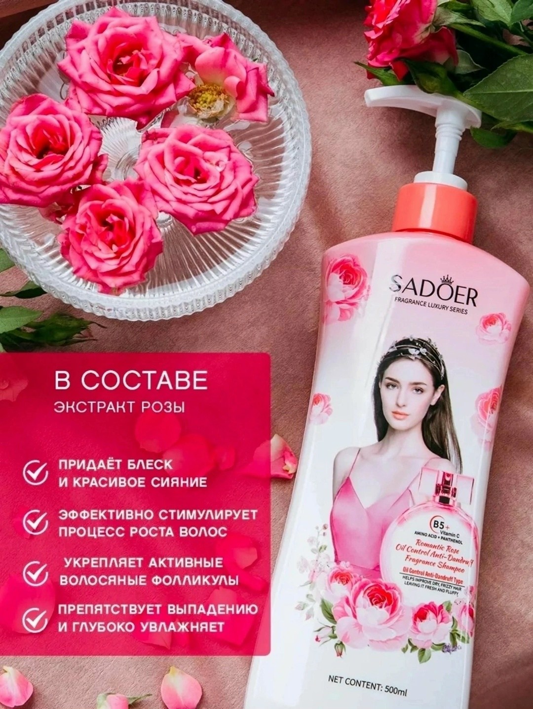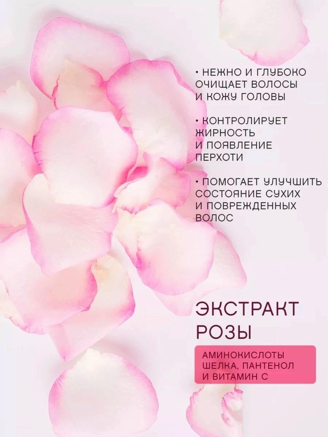 Этот шампунь дарит женщине уход за волосами, устраняя перхоть благодаря экстракту розы Средство подходит для всех типов волос, будь то жирные или сухие, тонкие или густые Его увлажняющий и смягчающий эффект придает блеск и гладкость кудрявым и вьющимся прядям Благодаря ежедневному использованию снижается выпадение и ломкость.