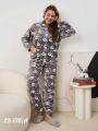 Эстетичный комплект женской домашней одежды больших размеров, который станет идеальным выбором для комфортного сна и уютных вечеров Этот теплый набор включает мягкую кофту на молнии и свободные штаны, созданные специально для девушек, ценящих стиль и практичность.