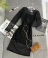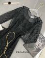Вечернее женское платье состоит из прозрачной сеточки, украшенной вкраплением блесток.