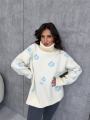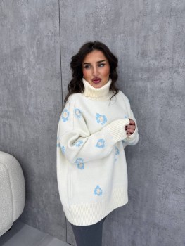 Свитер-туника с высоким горлом изготовлен из мягкой и приятной на ощупь пряжи, которая обеспечивает тепло.