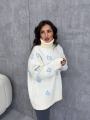 Вывязанный узор в виде цветов придает образу нежности.